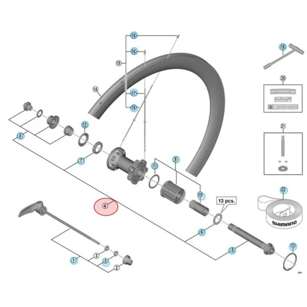 Axe complet de moyeu de roue arrière Shimano Dura Ace WH-R9100-C40