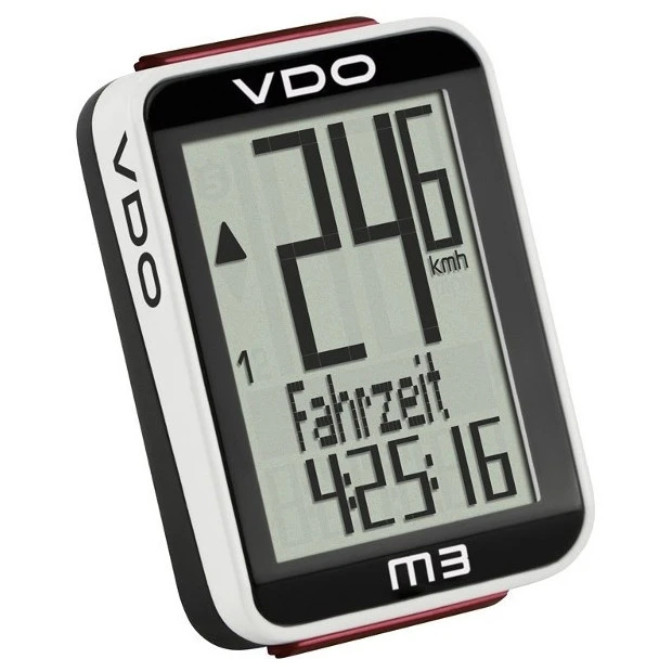 Le compteur M 3 de VDO présente un écran parfaitement lisible : sa moitié supérieure affiche en permanence la vitesse actuelle. La nouveauté de la série M est sa navigation au moyen d‘icônes se trouvant dans la partie centrale de l‘écran. La moitié inférieure de l‘écran affiche quant à elle, au choix, une des valeurs suivantes : distance quotidienne, temps quotidien, distance totale ou temps total. Grâce à sa touche de commande unique, le M 3 est extrêmement simple à utiliser et très intuitif.